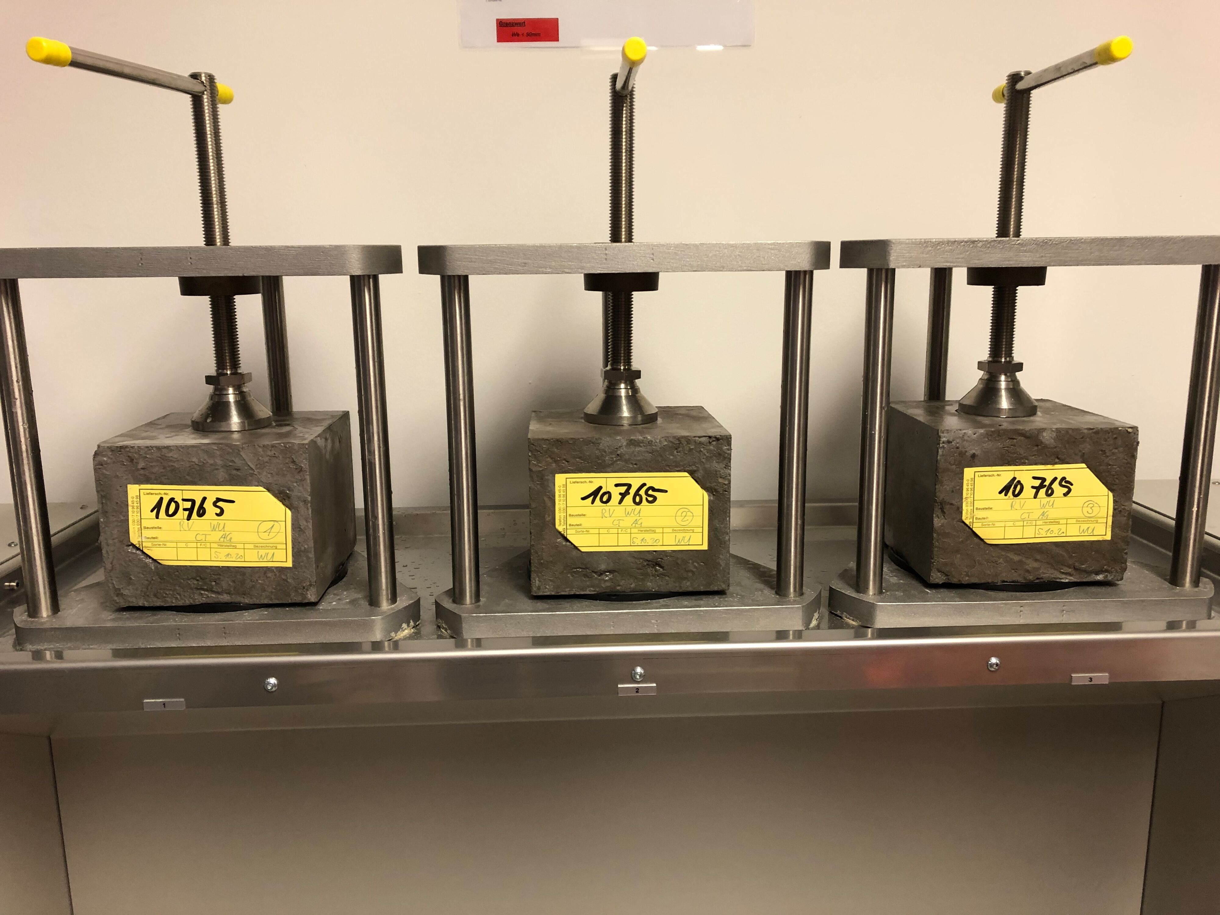 Con la determinazione del ritiro secondo SN EN 12390-16 è determinata la variazione di lunghezza causata dal processo di essiccazione in funzione del tempo. Durante la prova, i provini sono conservati in condizioni di essiccazione specifiche ed è registrata ad intervalli di tempo definiti la variazione della lunghezza.