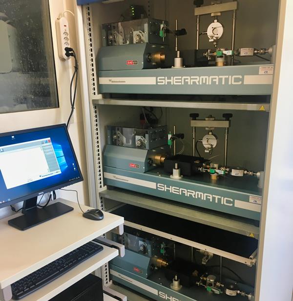 Nel campo delle analisi geotecniche su terreni naturali ci siamo dotati di nuove apparecchiature per l’esecuzione del taglio diretto la cui novità consiste nel fatto che il carico verticale viene ora applicato per via elettromeccanica e controllato retroattivamente tramite una cella di carico. Questo aumenta ulteriormente la stabilità nel corso di tutte le fasi dell’esecuzione, riducendone al contempo l’influenza da fattori esterni. La dotazione di 3 apparecchi che lavorano contemporaneamente garantisce di poter continuare a fornire i risultati nell’arco delle 24 ore.